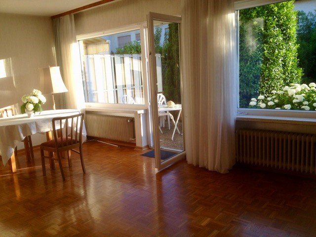 großer Garten, sehr ruhige Lage, gute Anbindung an Frankfurt