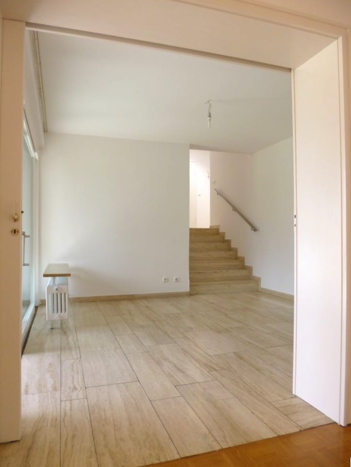 • hochwertige Fußböden (Parkett in Wohnzimmer, Naturstein (Travertin) im Esszimmer, im Flur und auf den Treppen, Kinderzimmer Laminatböden, neuer Parkettboden im Elternschlafzimmer, Fliesen in Küche und Bad/WC)