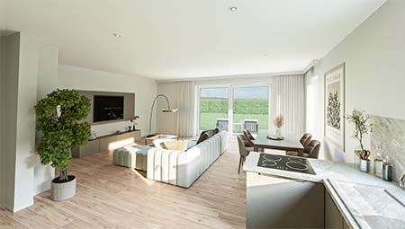 Vermietung Poing/Angelbrechting – Erstbezug! Trendige sonnige 3-Zimmer-Wohnung in kleiner Wohnanlage